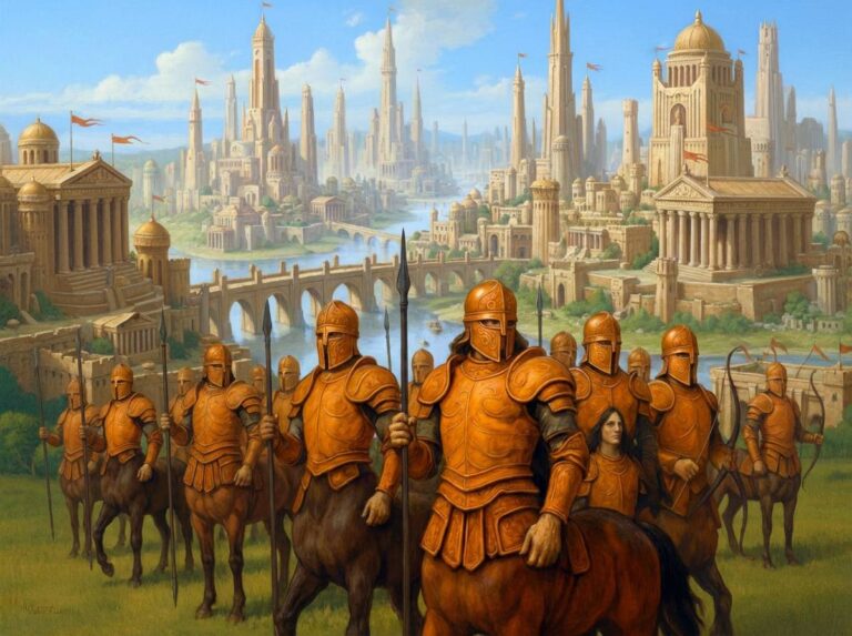 The temple is run and maintained by Centaur philosophers, half horse half human people. It is guarded by an armada of Centurion Centaurs, soldiers in the Centaur Empire.